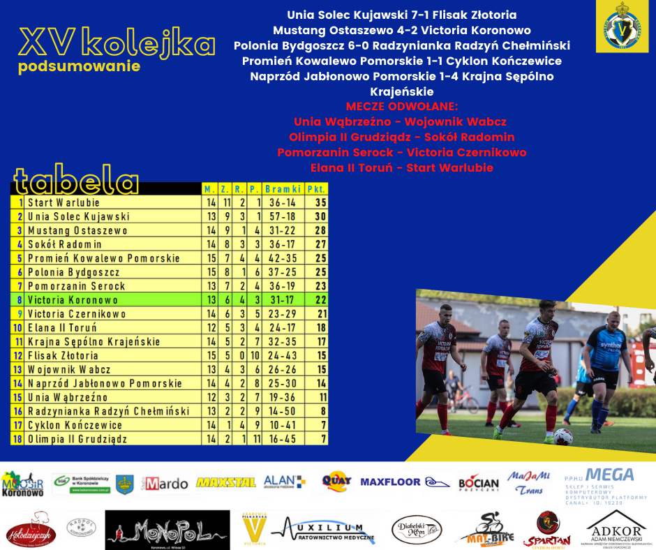 Podział punktów w meczu z Wojownikiem Wabcz, remis 2:2. Bramki dla Victorii padły w pierwszej połowie, strzelcami Aleksander Zieliński i Oleksandr Ovsiak.