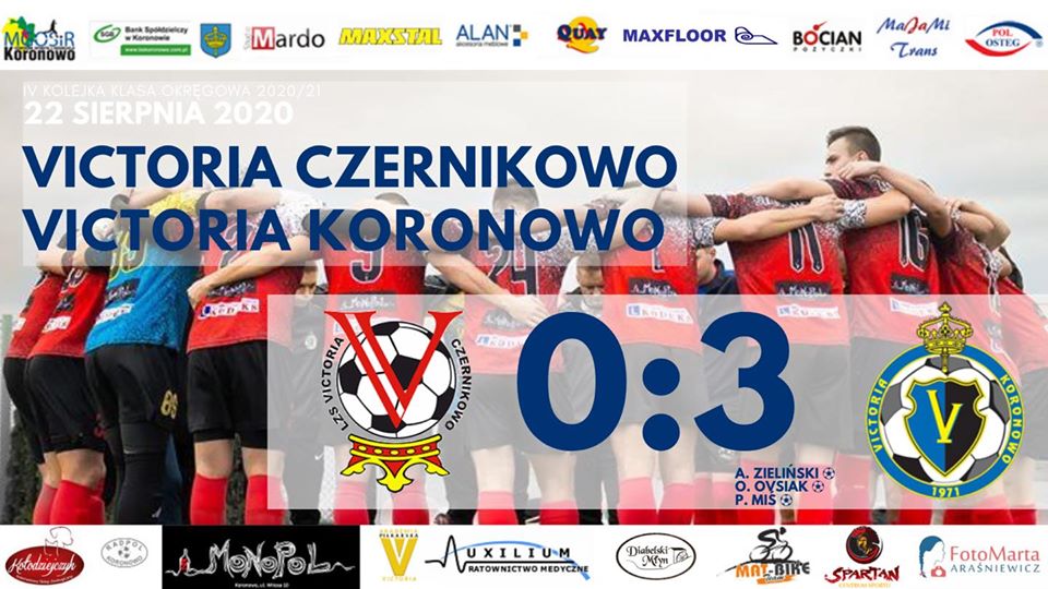 3 punkty jadą do Koronowa! Po bramkach Olka Zielińskiego, Olka Ovsiaka i Piotra Misia wygrywamy w Czernikowie 3:0! W meczu zadebiutował Aleksander Karbowski, lat 15.