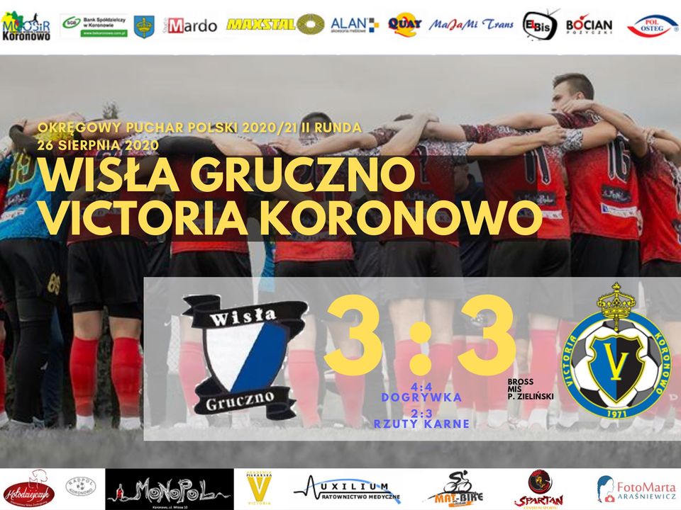 W serii rzutów karnych lepsi zawodnicy Victorii Koronowo, którzy rezultatem 2:3 zapewnili sobie awans do kolejnej rundy.