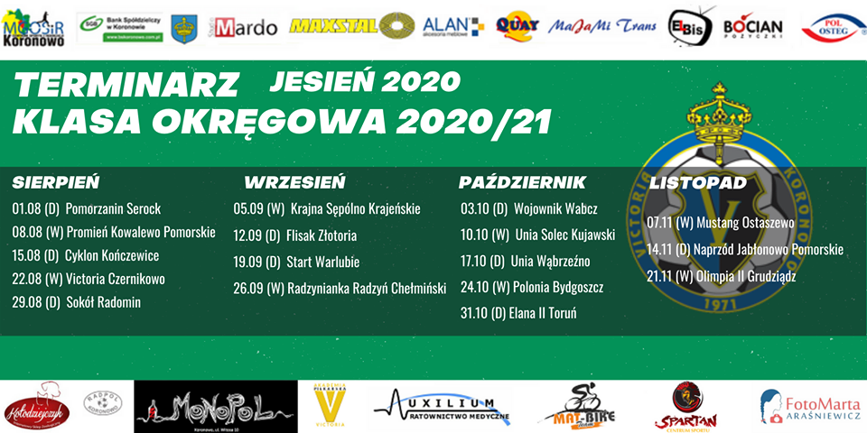 Victoria rozpoczyna od meczu z Pol-Osteg Pomorzanin Serock. Spotkanie odbędzie się 1 sierpnia na Stadion Miejski w Koronowie.