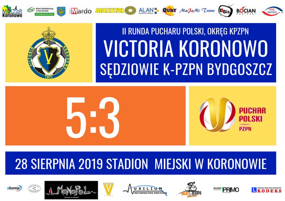 Wydział Gier i Ewidencji rozlosował pary l rundy Pucharu Polski na szczeblu K-PZPN w sezonie 2019/2020. Victoria Koronowo rozegra mecz w Sicienku, z miejscowym Gryfem! Termin rozegrania meczów ustalono na 3/4 sierpnia.